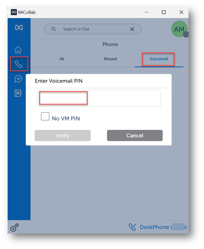 Once you have set a permanent voicemail passcode using the instructions below, you may then sign into the Voicemail tab of the MiCollab desktop application:
